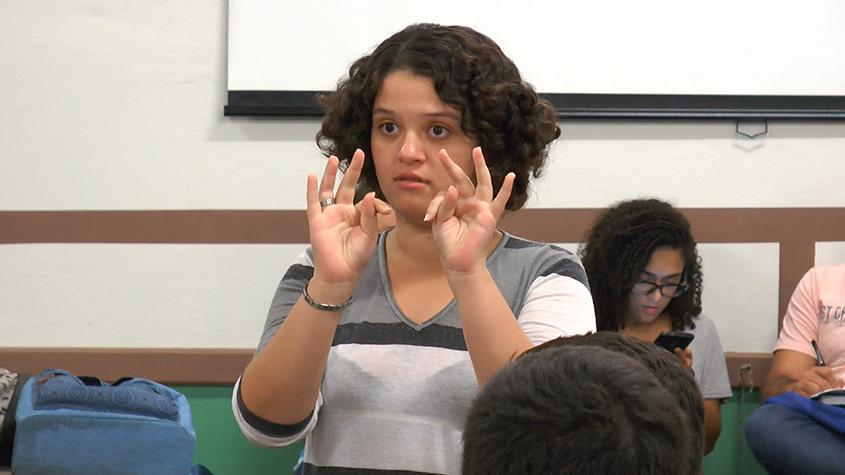 Linguagem de sinais é oferecida aos alunos e à comunidade