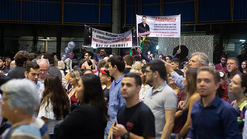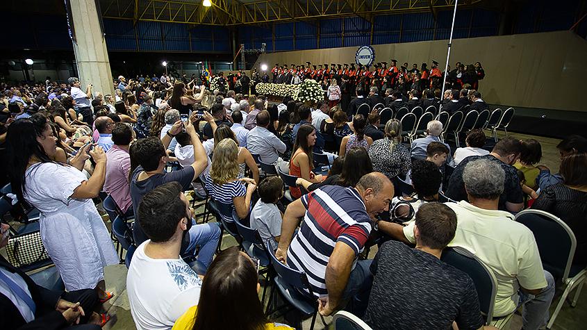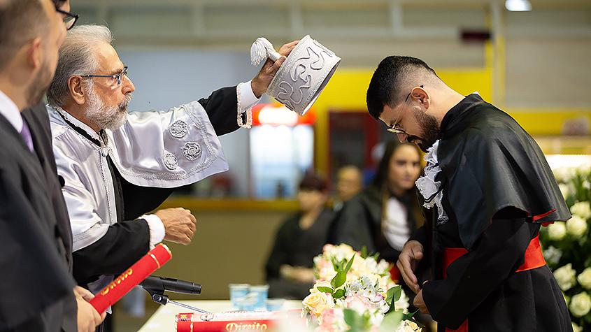 O Centro Universitário Eurípides de Marília – UNIVEM deu início, na noite da última quarta-feira (22), as Colações de Grau dos alunos concluintes em 2019. Os alunos das Turmas LII do curso de Direito (diurno e noturno) foram os primeiros a faz seus juramentos. As solenidades realizadas no Centro de Convivência do UNIVEM contaram com a presença de pró-reitores, coordenadores dos cursos, docentes, familiares e convidados.