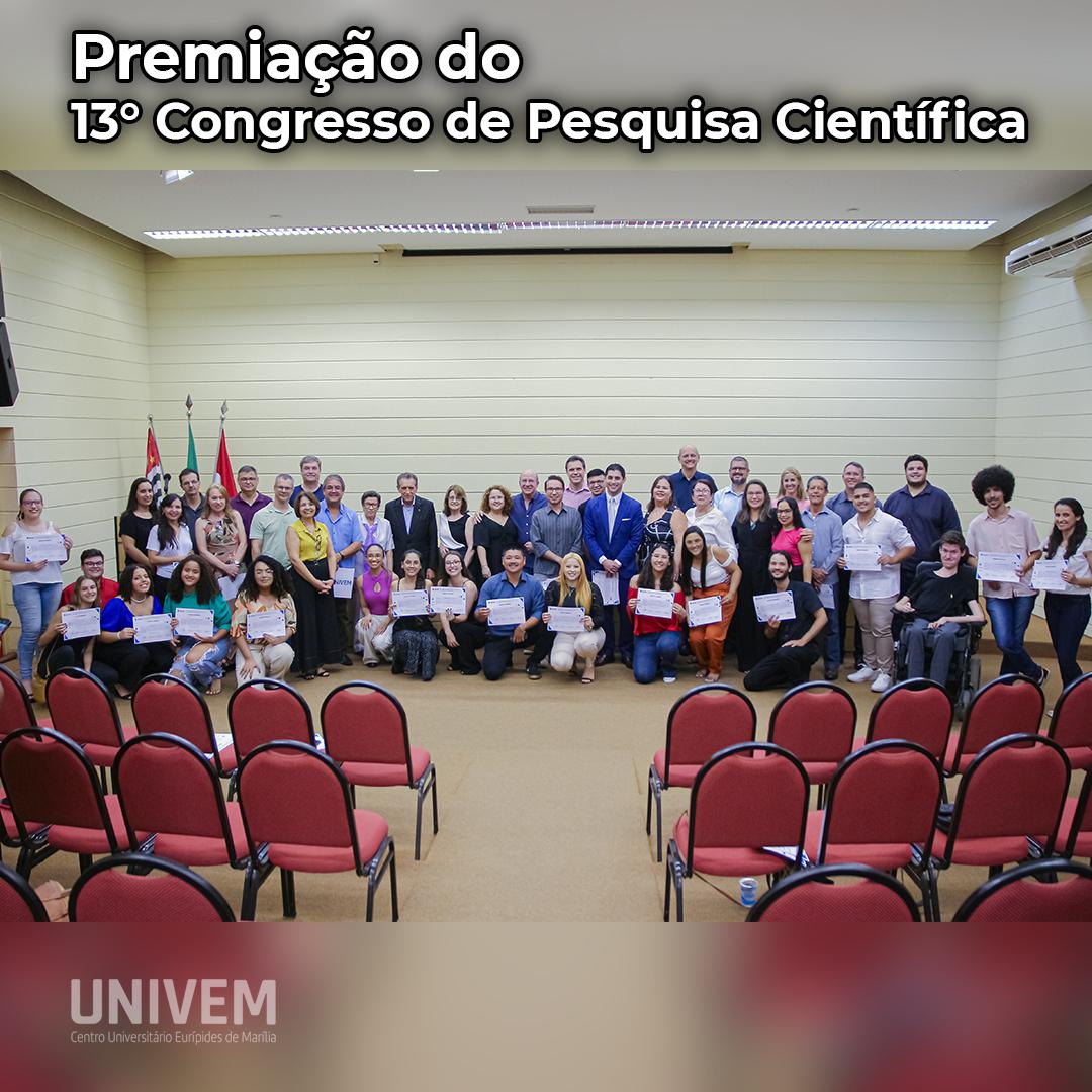 Cerimônia de entrega das menções honrosas para autores e orientadores que participaram do 13° Congresso de Pesquisa Científica