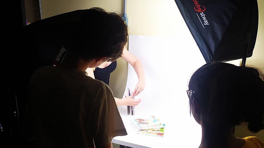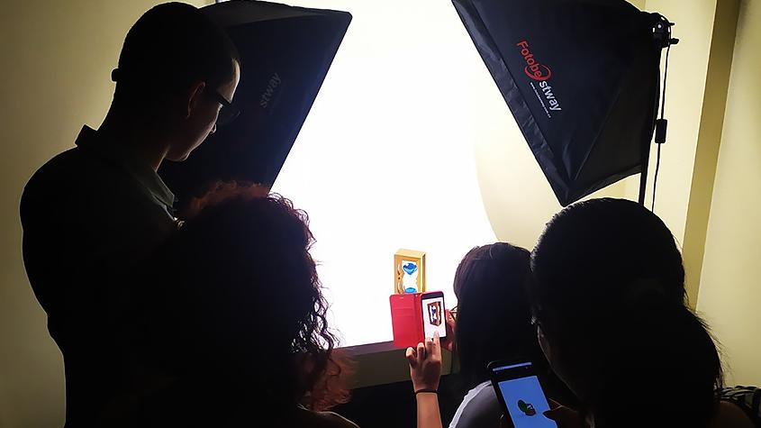 Foto Fábio Borgues (2) - Alunos do curso de Design Gráfico fotografando com smartphone utilizando iluminação de luz contínua.