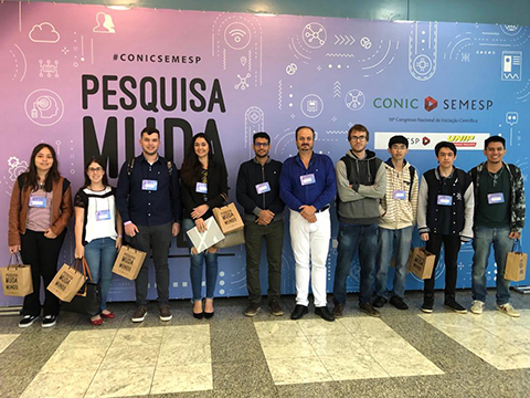 Alunos dos cursos de Administração, Ciências Contábeis, Direito, Engenharia de Produção, Ciência da Computação e Sistemas de Informação do UNIVEM, acompanhados pelo professor Caio Saraiva Coneglian, participaram nos dias 30 de novembro e 1º de dezembro, em São Paulo, do 18º Congresso Nacional de Iniciação Científica (CONIC), um dos maiores eventos do País. O evento contou com a participação de 12.177 orientadores, 23.738 trabalhos apresentados e 35.746 alunos envolvidos nas produções científicas.