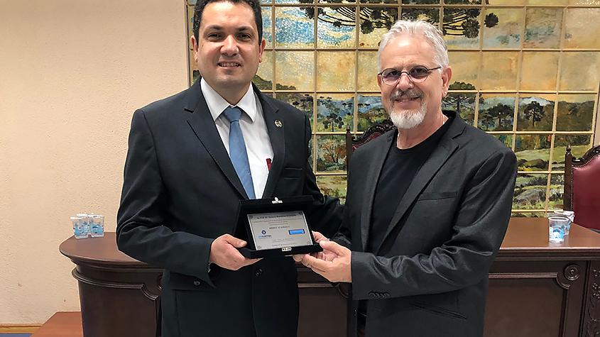 Esse mesmo professor também recebeu, durante o evento, homenagem de reconhecimento e agradecimento pela sua participação efetiva e fundamental como professor colaborador do PPGD/UNICURITIBA, tendo recebido a placa de Mérito Acadêmico das mãos do Presidente da CAPES, Prof. Dr. Anderson Correia.
